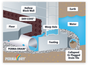 - Pressure Relief: By providing an effective drainage route, the PERMA-DRAIN™ System relieves pressure on the foundation walls, minimizing the risk of water penetration. When water is collected and directed away, the force exerted on the walls is reduced, helping to prevent structural issues or leaks.