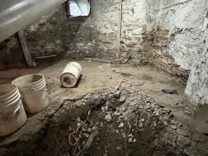 Lowering the basement floor increases the risk of flooding due to hydrostatic pressure (learn more). To mitigate this, we install our PERMA-DRAIN and PERMA-PUMP Systems. PERMA-DRAIN collects groundwater beneath the floor, while PERMA-PUMP directs it safely away from the foundation.